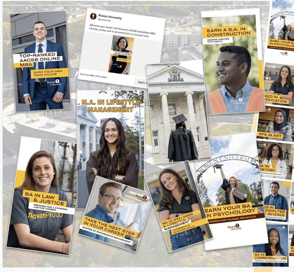 At Rowan University, I led creative and digital content strategy, building AI-accelerated workflows that improved lead accuracy from 36% to 93% and helped drive two consecutive record-setting enrollment years.